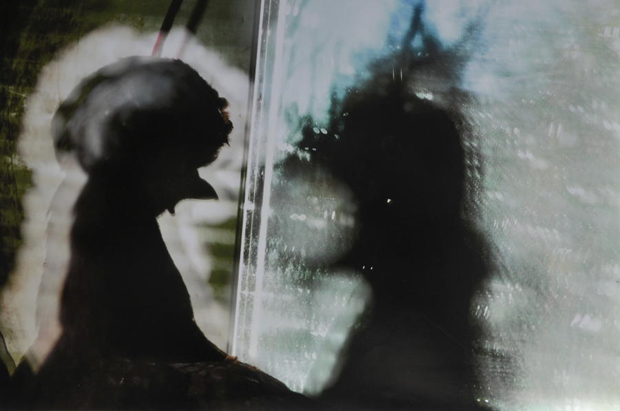 Malgé ces turpitudes, Rémi aime passionnément les coqs et poules naines. Il les aime tant qu'ils adoptent, pour lui rendre cet amour, des attitudes humaines. Nous voilà caricatures de notre propre banalité. Nous, qui nous croyons suprêmes, sommes obligés d'affronter les miroirs de notre condition qui se révèle plus proche du néant que d'une ambition universelle. Ces photographies portent les stigmates que nous voulons ignorer. A nous de les regarder dans la plus intime des sincérités.