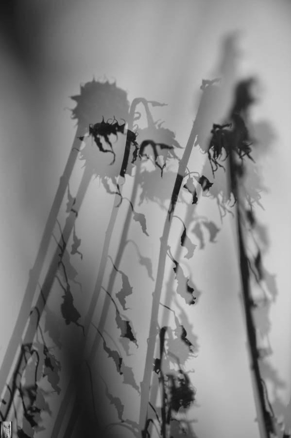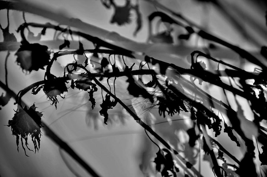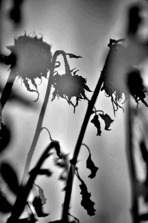 Les tournesols se lamentent dans le frimas du présent. Ils portent l'incantation au plus profond de leurs graines, au plus dérisoire de leurs tiges asséchées par une vie dédiée à l'astre suprême. Ils subsistent dans l'automne, attendant d'être fauchés par l'impitoyable hiver qui les attend, sereinement .